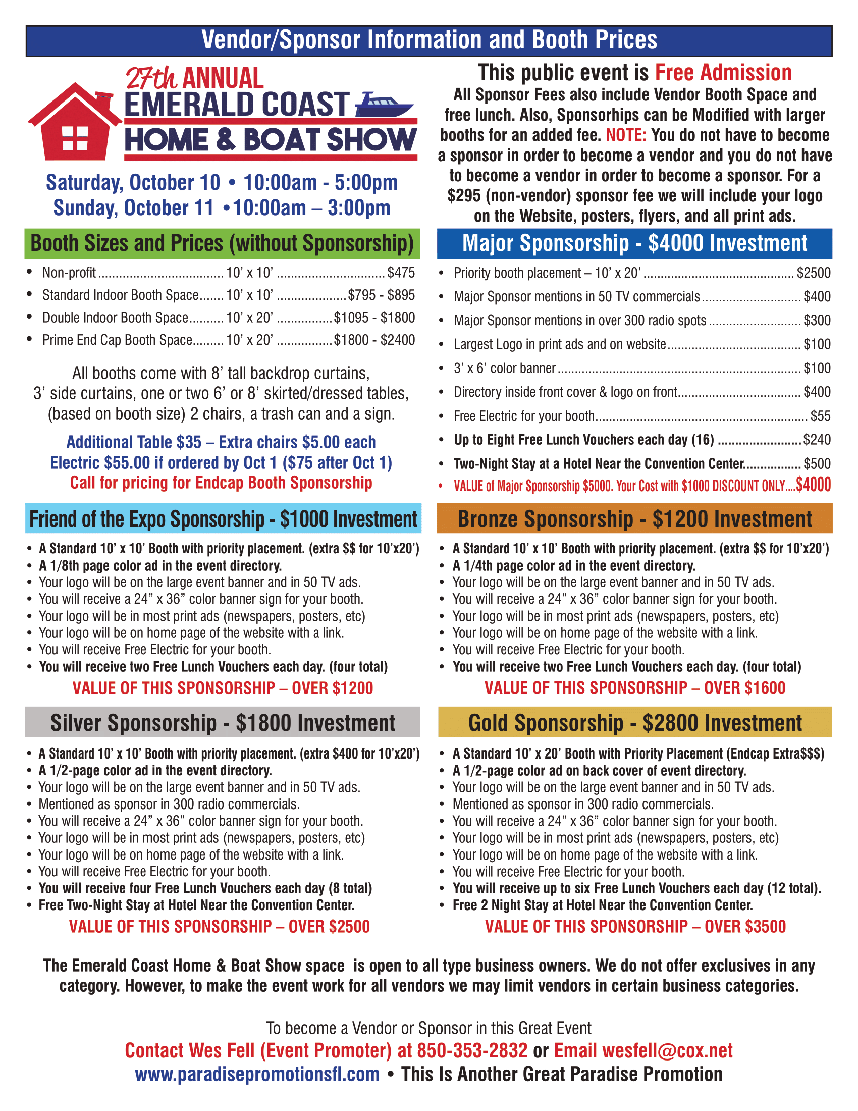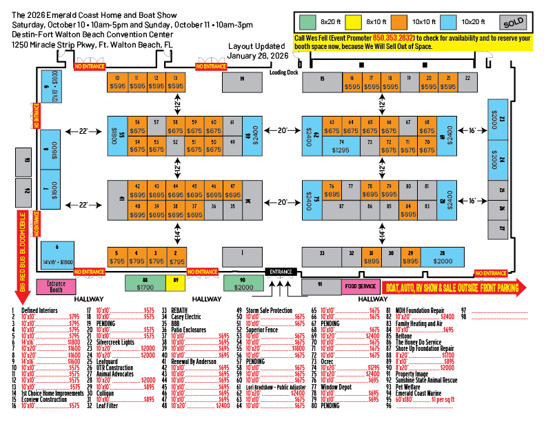 The 27th Annual Emerald Coast Home & Boat Show will be held on October 10 & 11, 2026
