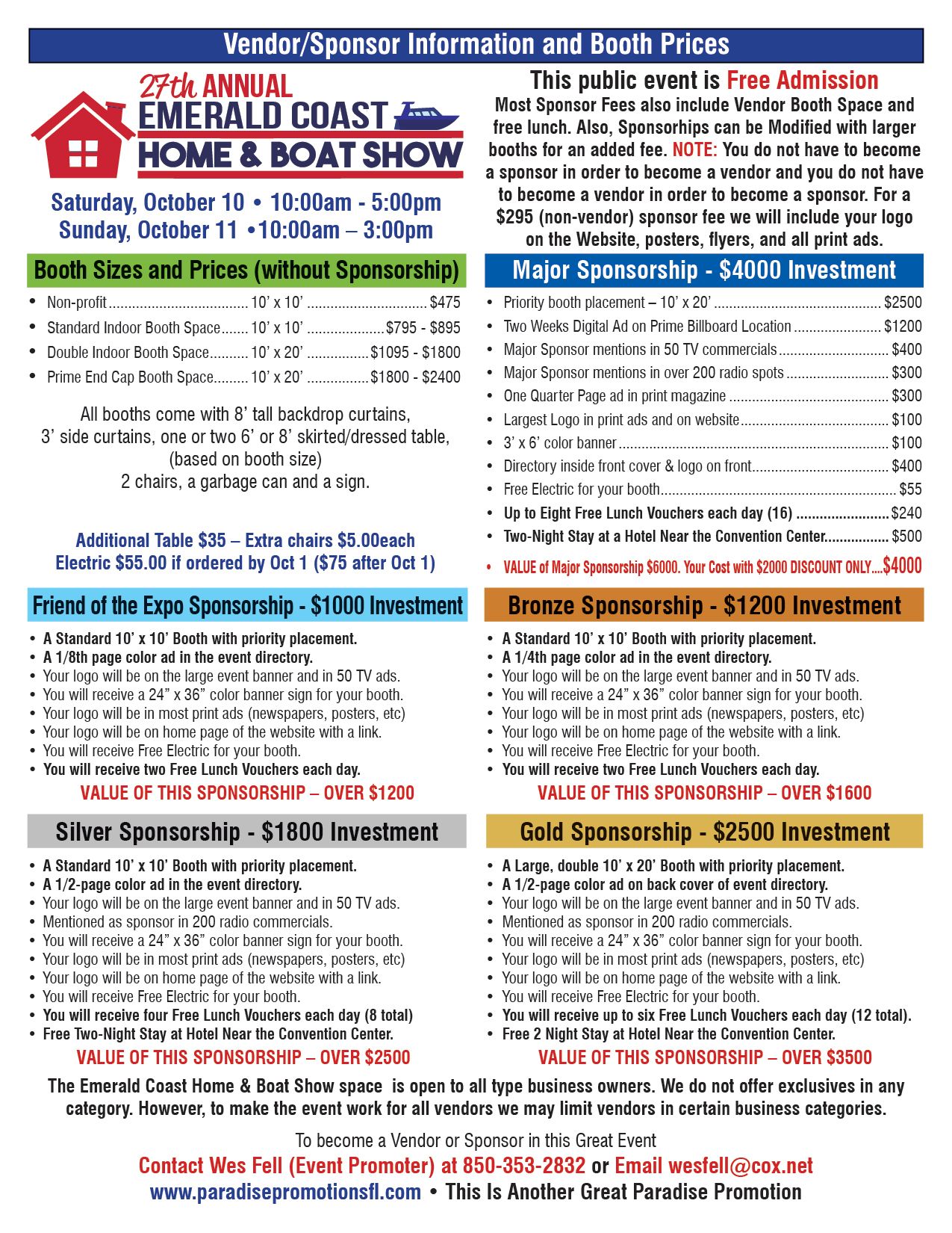 The 27th Annual Emerald Coast Home & Boat Show will be held on October 10 & 11, 2026