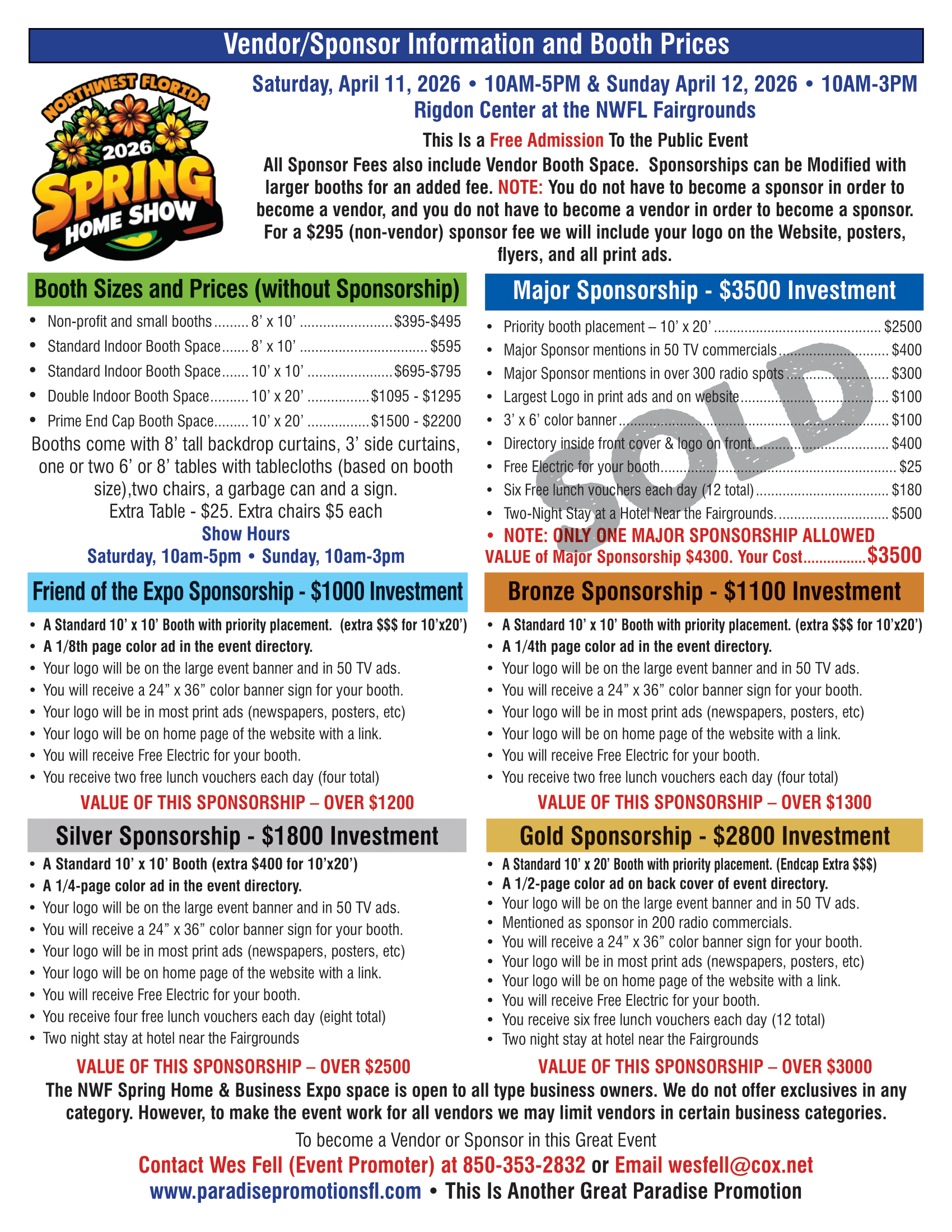 - FREE ADMISSION to all visitors to ensure a huge crowd of customers for your business!